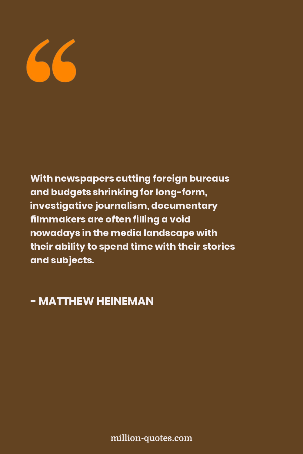 With newspapers cutting foreign bureaus and budgets shrinking for long-form, investigative journalism, documentary filmmakers are often filling a void nowadays in the media landscape with their ability to spend time with their stories and subjects.