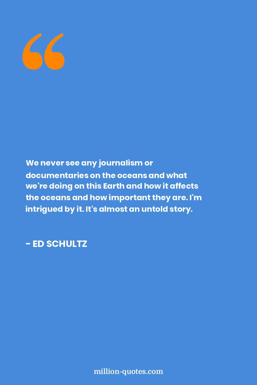 We never see any journalism or documentaries on the oceans and what we're doing on this Earth and how it affects the oceans and how important they are. I'm intrigued by it. It's almost an untold story.