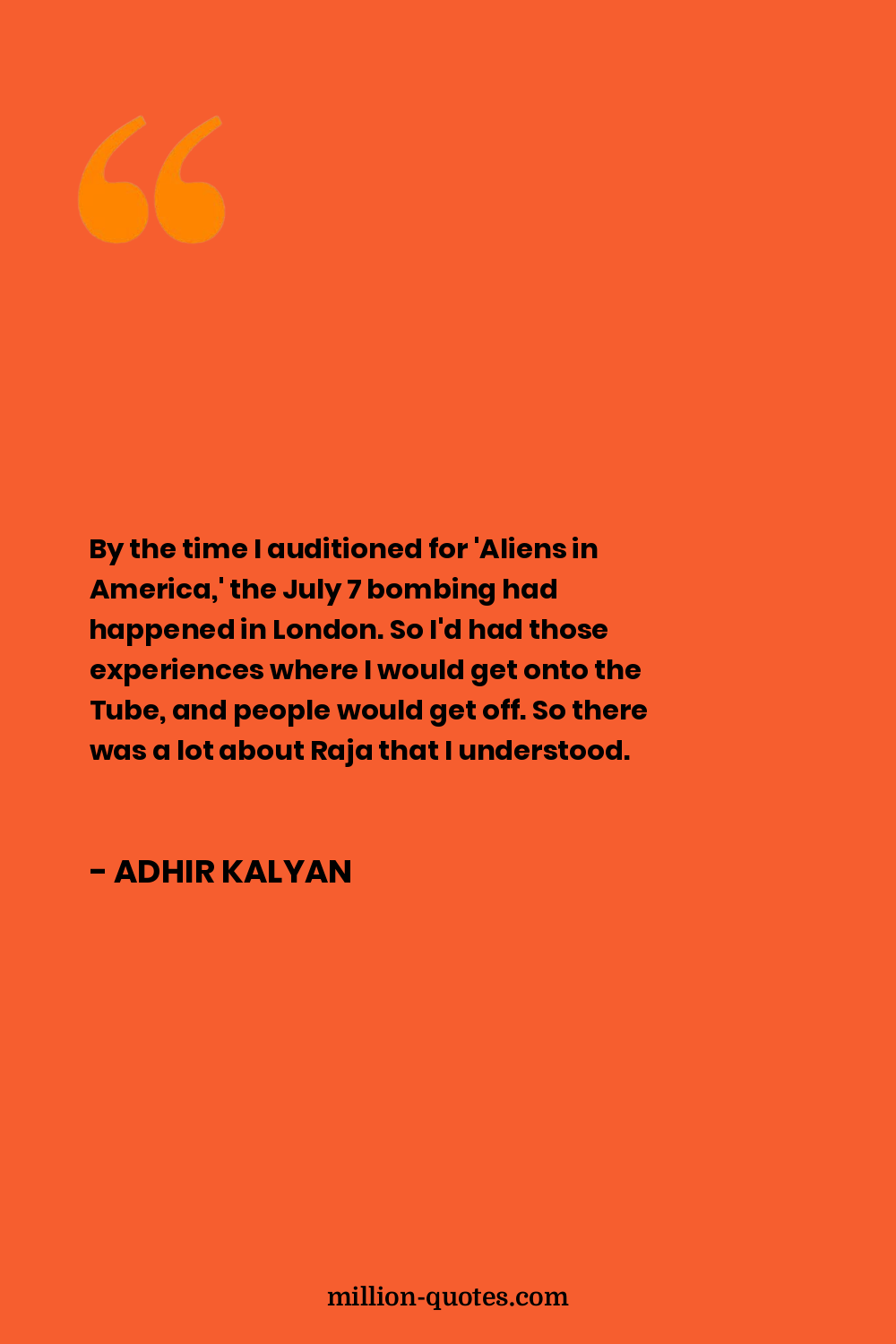 By the time I auditioned for 'Aliens in America,' the July 7 bombing had happened in London. So I'd had those experiences where I would get onto the Tube, and people would get off. So there was a lot about Raja that I understood.