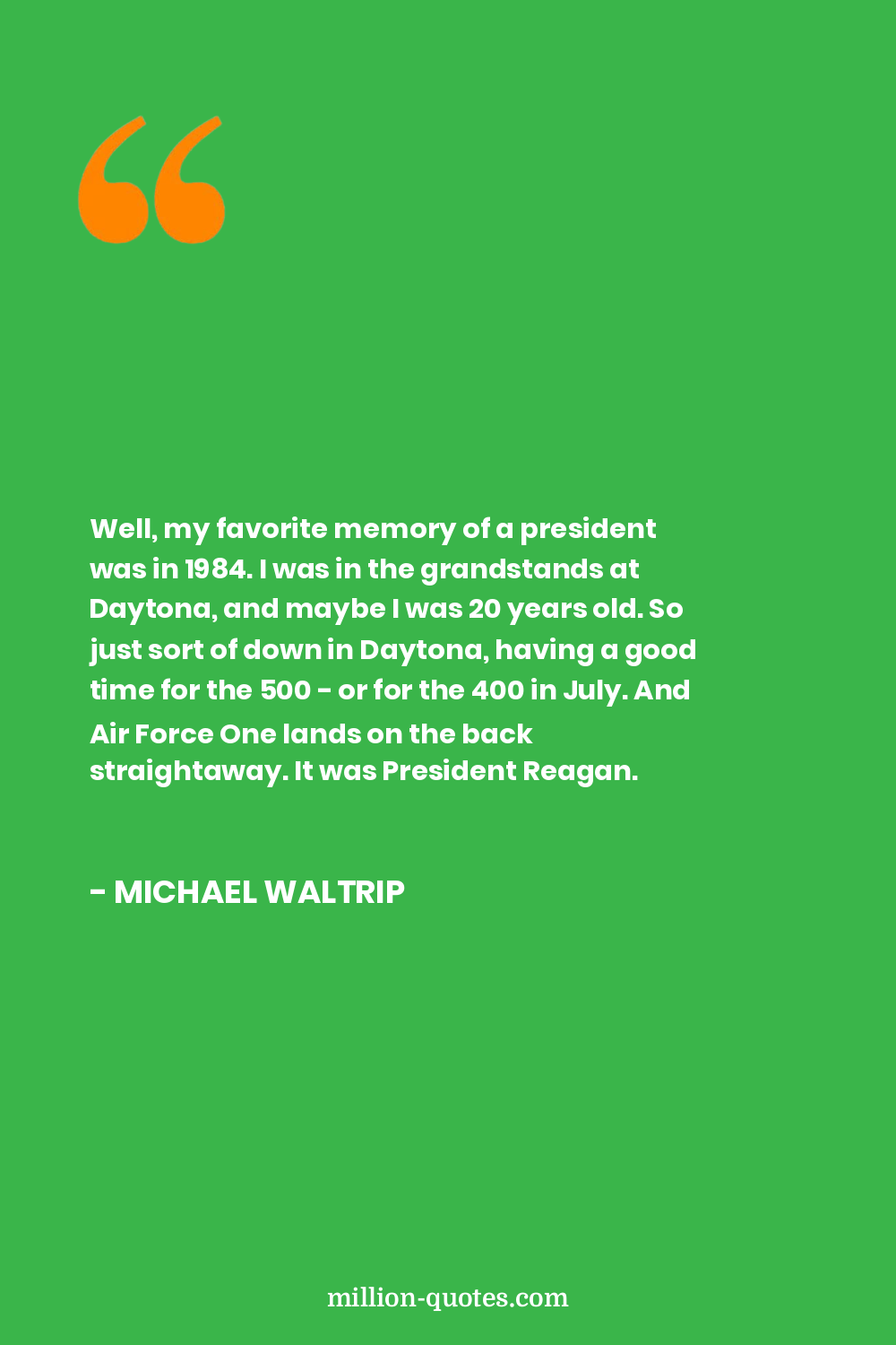 Well, my favorite memory of a president was in 1984. I was in the grandstands at Daytona, and maybe I was 20 years old. So just sort of down in Daytona, having a good time for the 500 - or for the 400 in July. And Air Force One lands on the back straightaway. It was President Reagan.