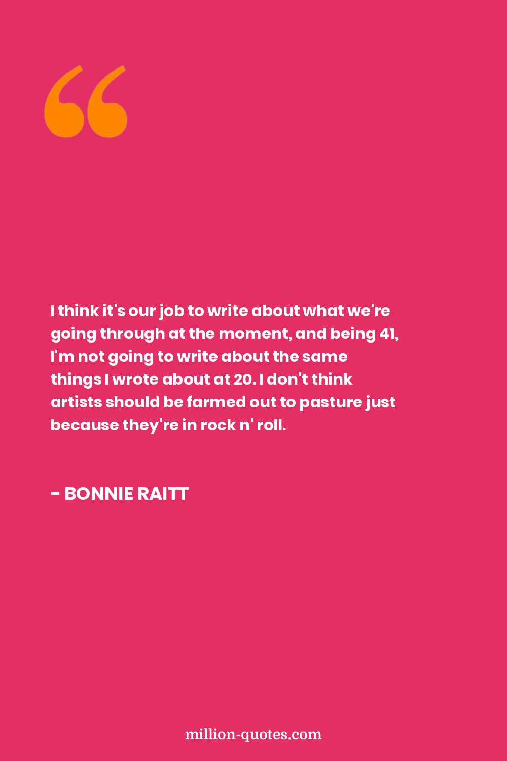 I think it's our job to write about what we're going through at the moment, and being 41, I'm not going to write about the same things I wrote about at 20. I don't think artists should be farmed out to pasture just because they're in rock n' roll.