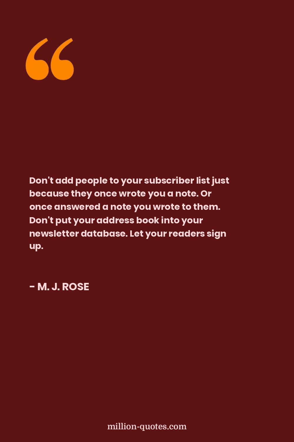 Don't add people to your subscriber list just because they once wrote you a note. Or once answered a note you wrote to them. Don't put your address book into your newsletter database. Let your readers sign up.