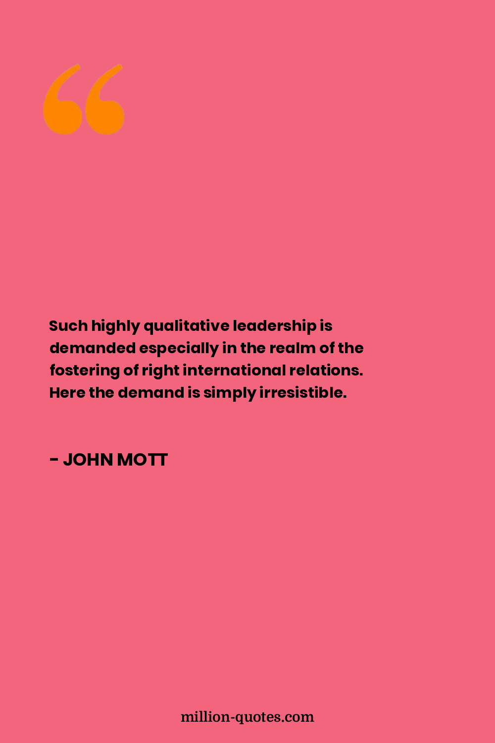 Such highly qualitative leadership is demanded especially in the realm of the fostering of right international relations. Here the demand is simply irresistible.