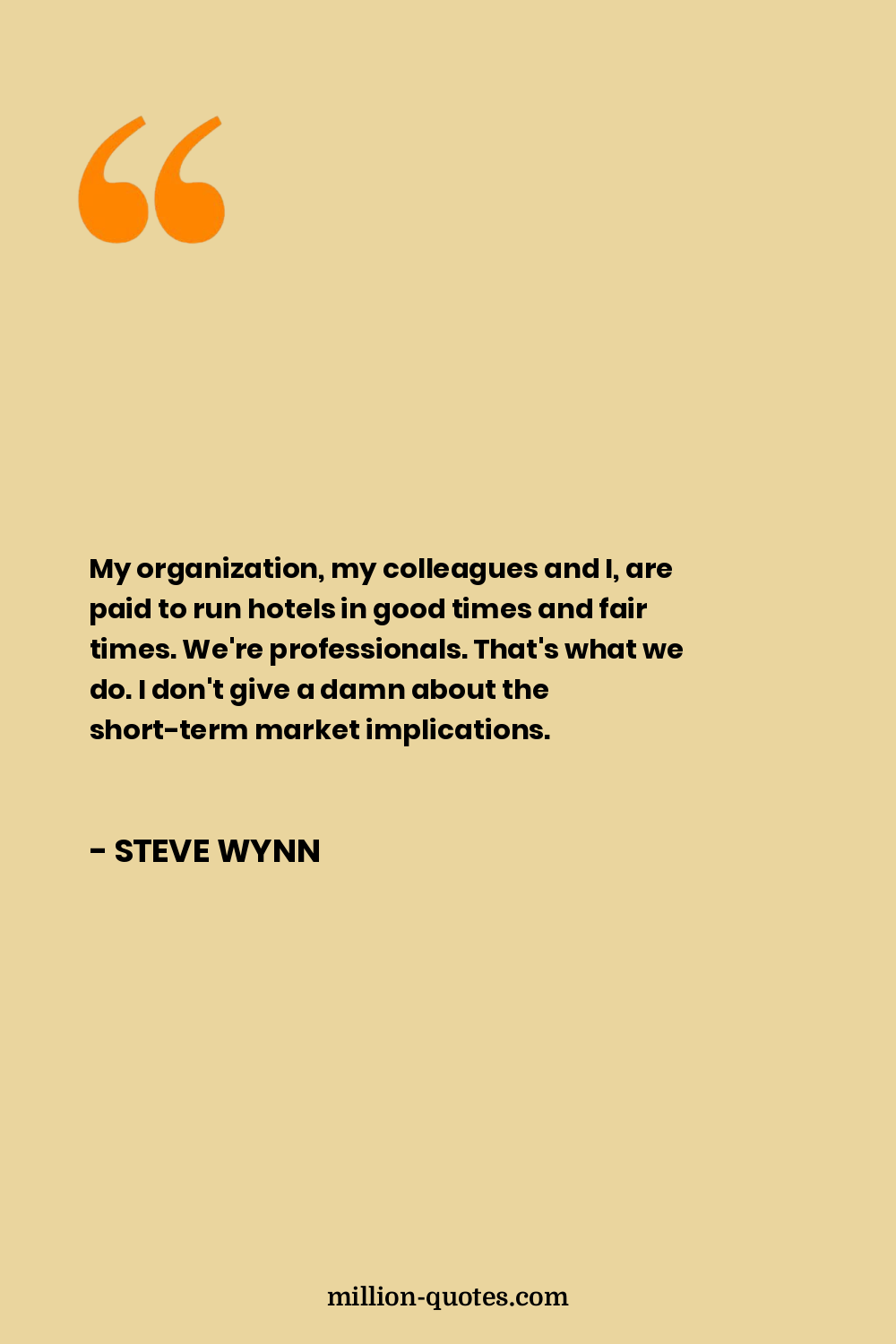 My organization, my colleagues and I, are paid to run hotels in good times and fair times. We're professionals. That's what we do. I don't give a damn about the short-term market implications.