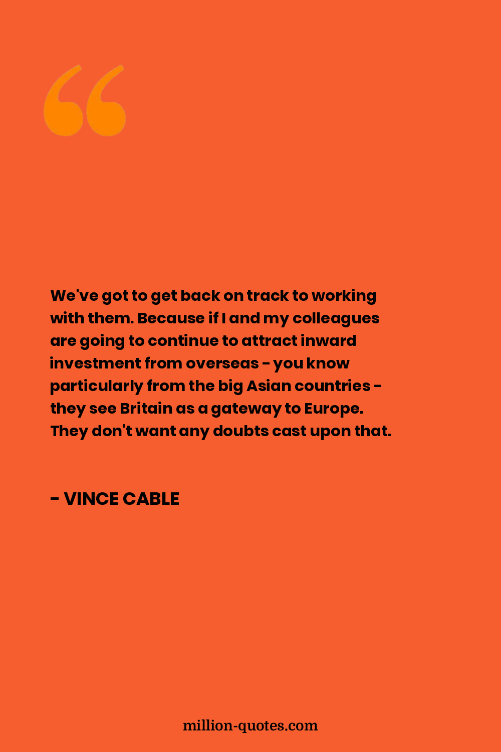 We've got to get back on track to working with them. Because if I and my colleagues are going to continue to attract inward investment from overseas - you know particularly from the big Asian countries - they see Britain as a gateway to Europe. They don't want any doubts cast upon that.