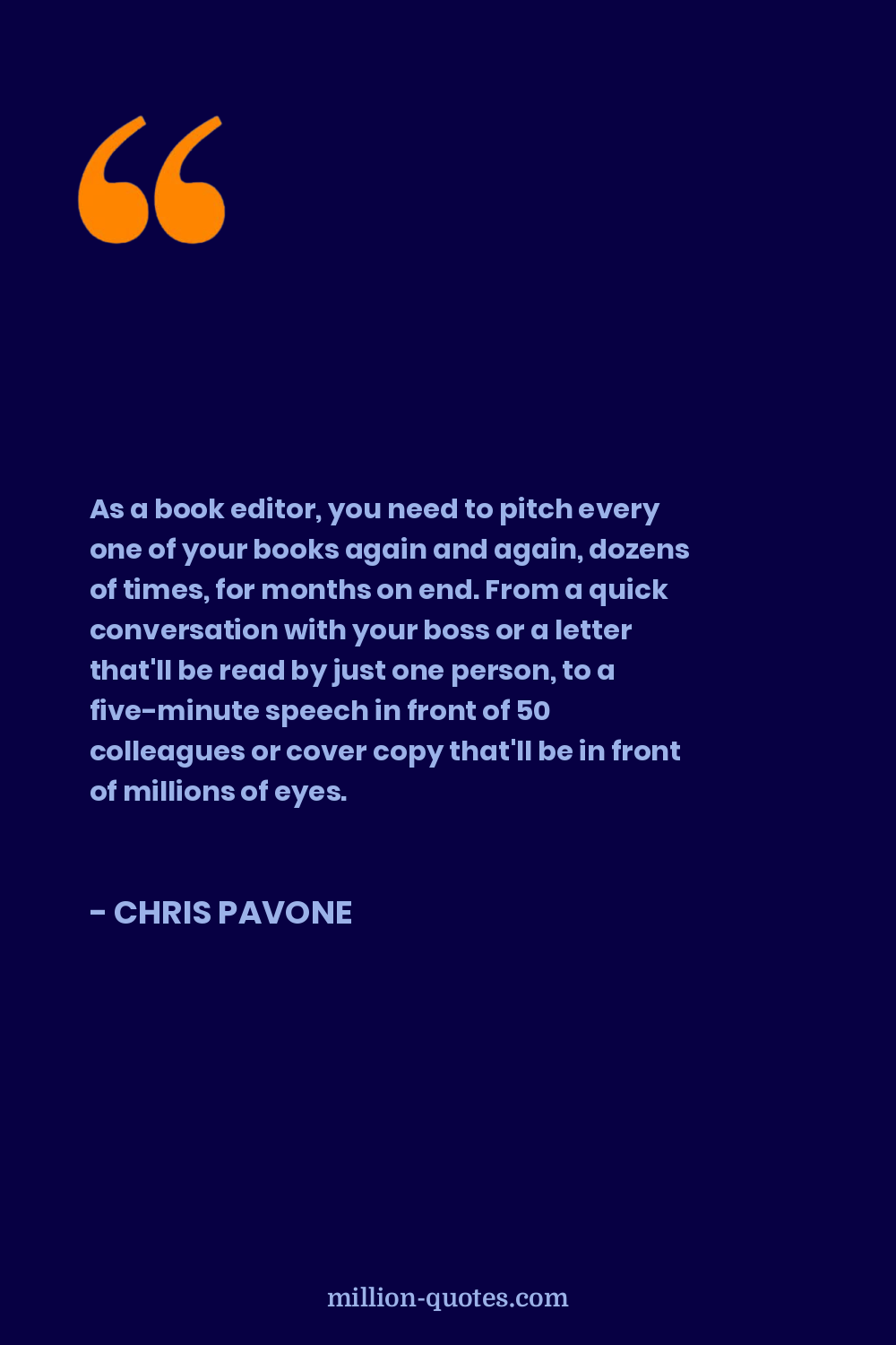As a book editor, you need to pitch every one of your books again and again, dozens of times, for months on end. From a quick conversation with your boss or a letter that'll be read by just one person, to a five-minute speech in front of 50 colleagues or cover copy that'll be in front of millions of eyes.