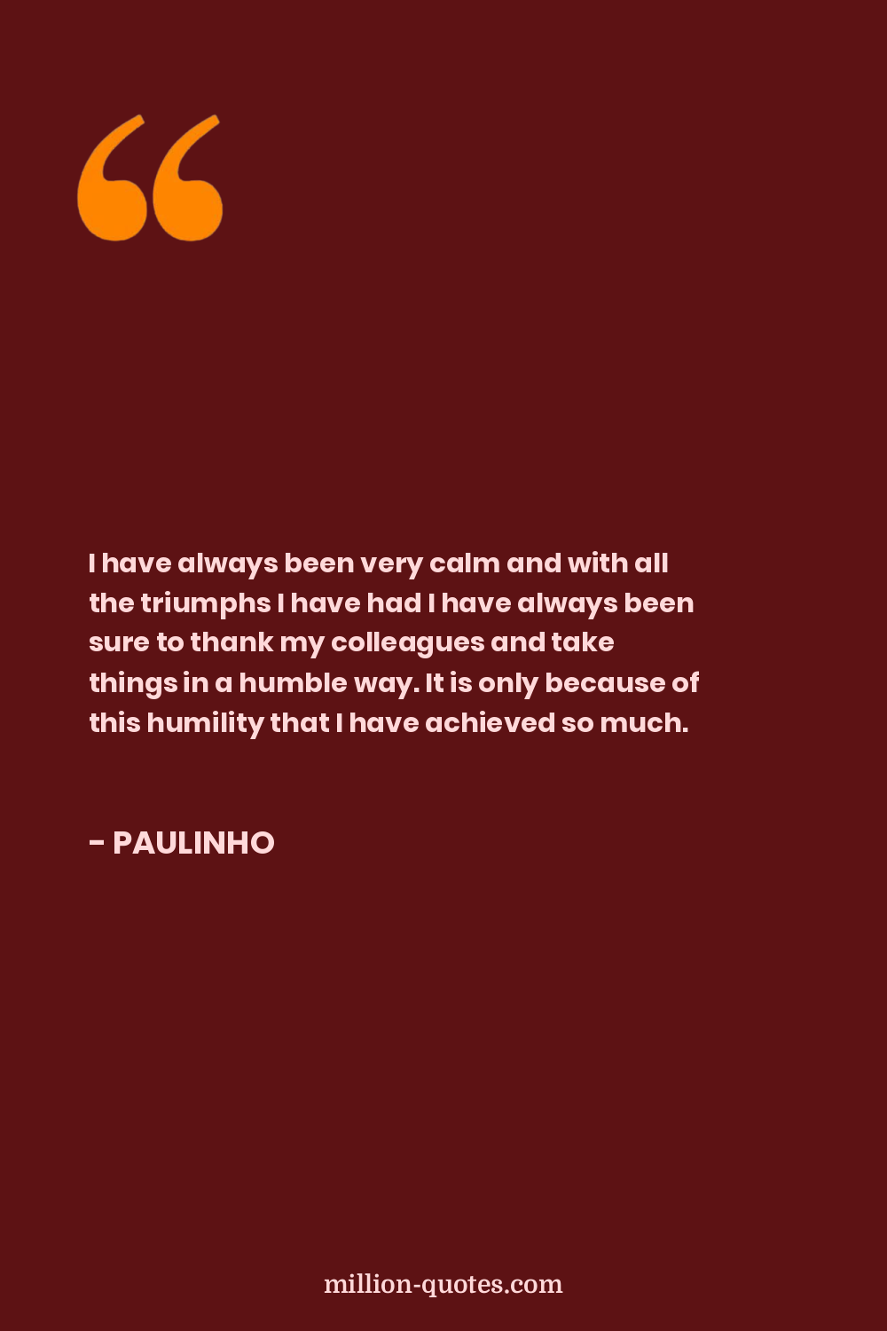 I have always been very calm and with all the triumphs I have had I have always been sure to thank my colleagues and take things in a humble way. It is only because of this humility that I have achieved so much.