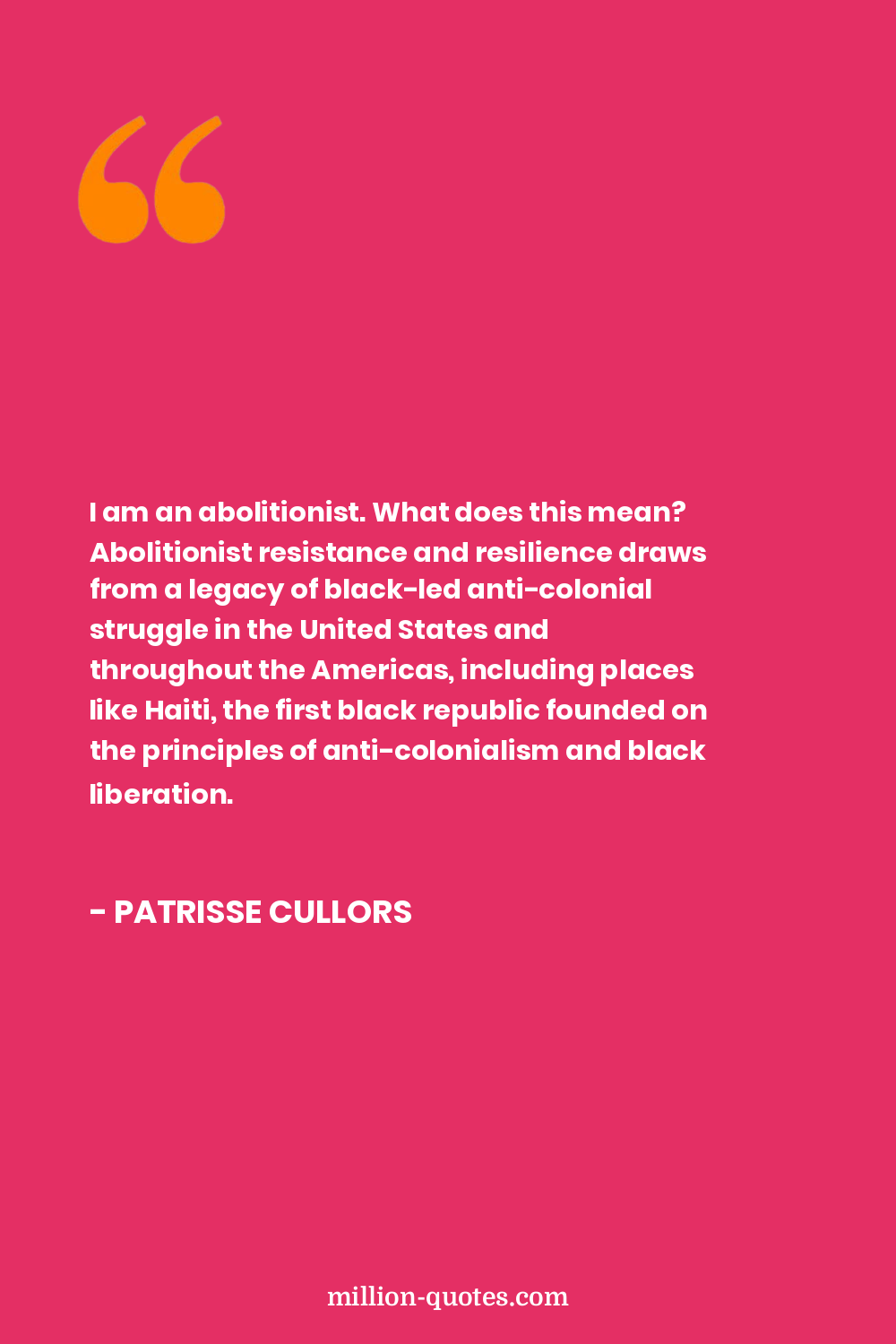 I am an abolitionist. What does this mean? Abolitionist resistance and resilience draws from a legacy of black-led anti-colonial struggle in the United States and throughout the Americas, including places like Haiti, the first black republic founded on the principles of anti-colonialism and black liberation.