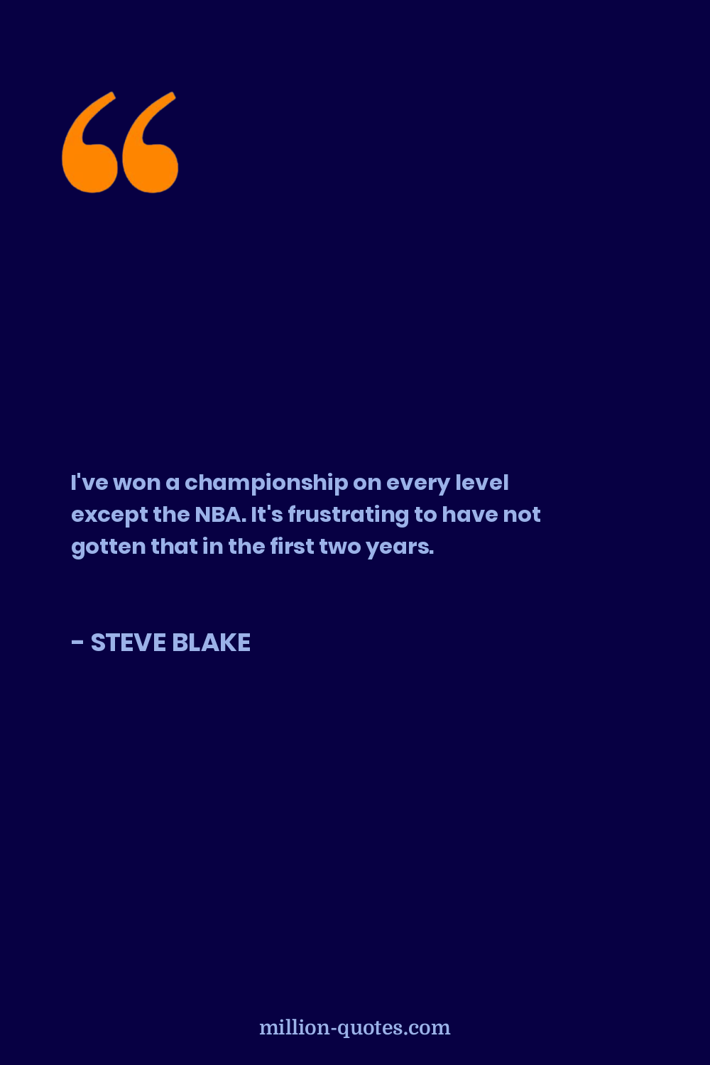 I've won a championship on every level except the NBA. It's frustrating to have not gotten that in the first two years.