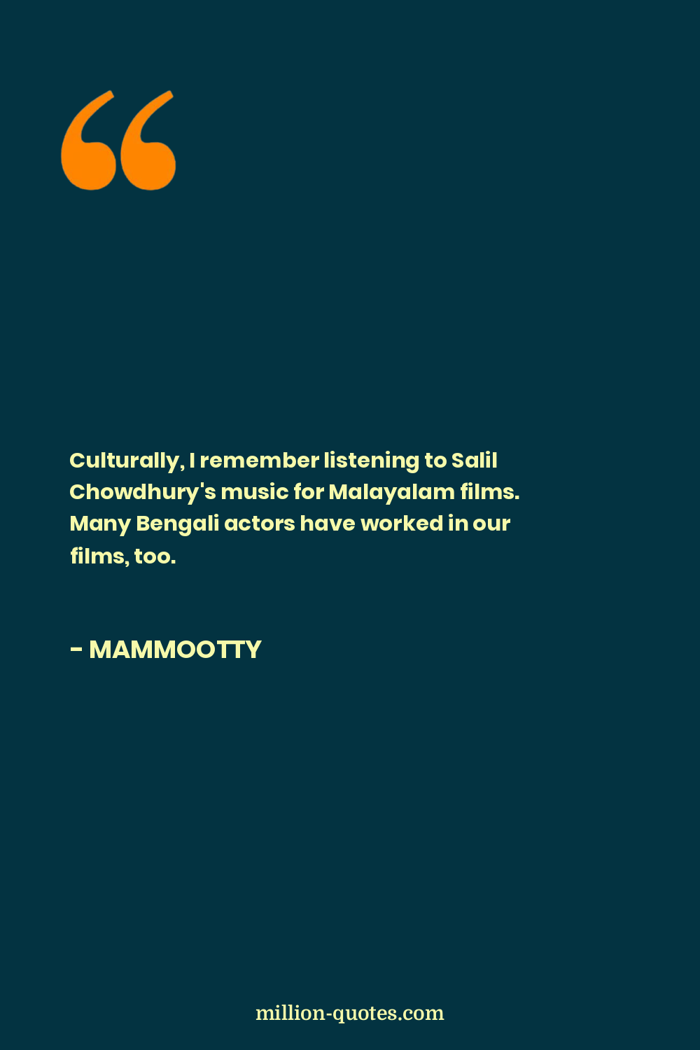 Culturally, I remember listening to Salil Chowdhury's music for Malayalam films. Many Bengali actors have worked in our films, too.