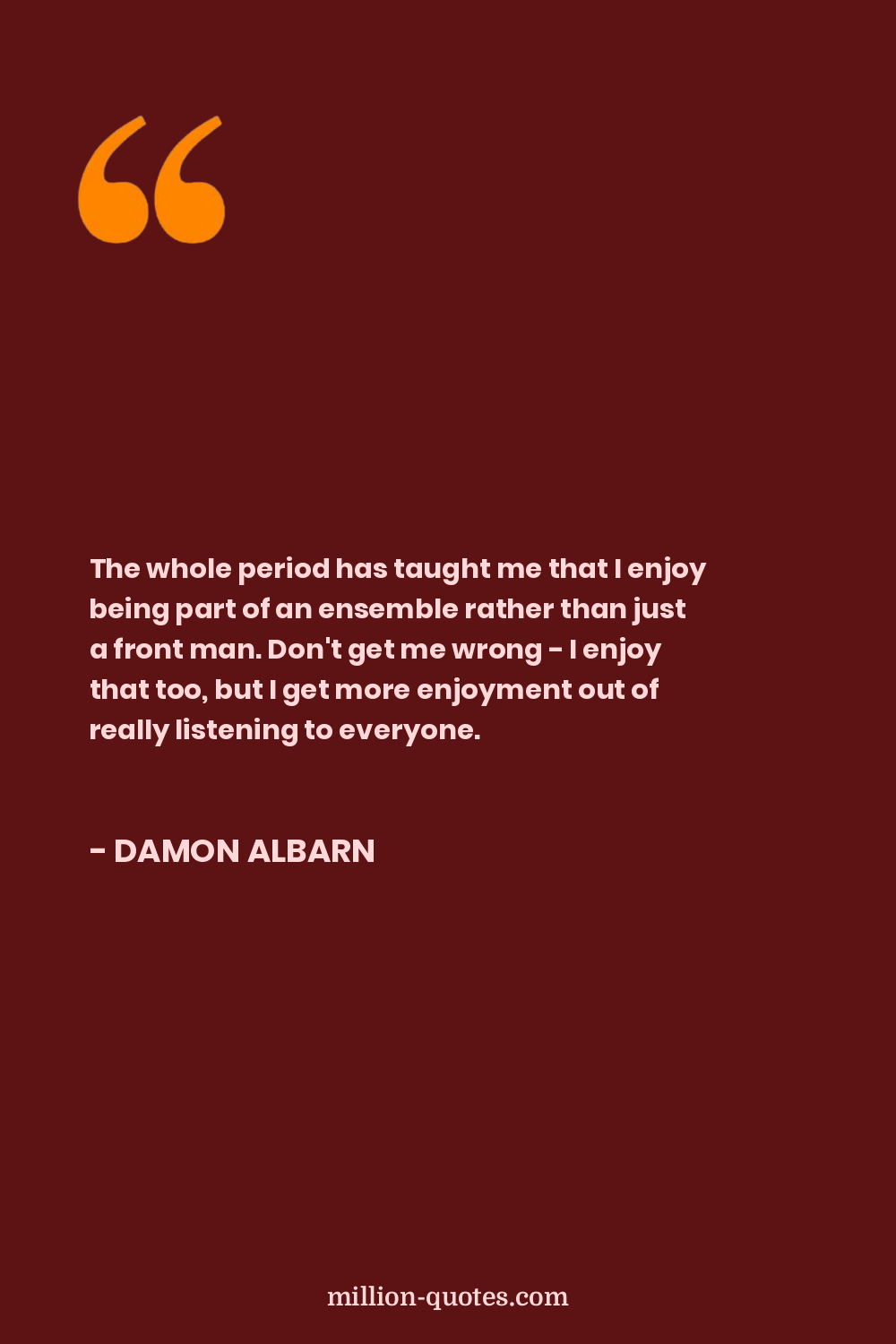The whole period has taught me that I enjoy being part of an ensemble rather than just a front man. Don't get me wrong - I enjoy that too, but I get more enjoyment out of really listening to everyone.