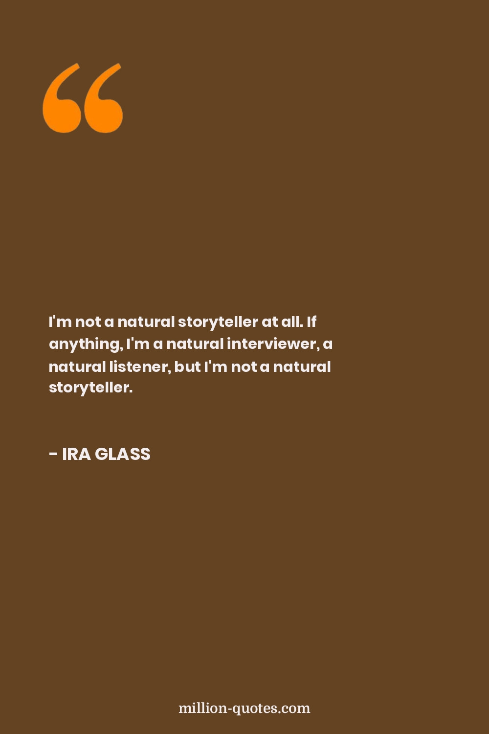 I'm not a natural storyteller at all. If anything, I'm a natural interviewer, a natural listener, but I'm not a natural storyteller.