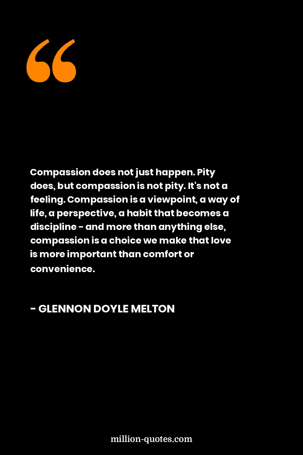 Compassion does not just happen. Pity does, but compassion is not pity. It's not a feeling. Compassion is a viewpoint, a way of life, a perspective, a habit that becomes a discipline - and more than anything else, compassion is a choice we make that love is more important than comfort or convenience.