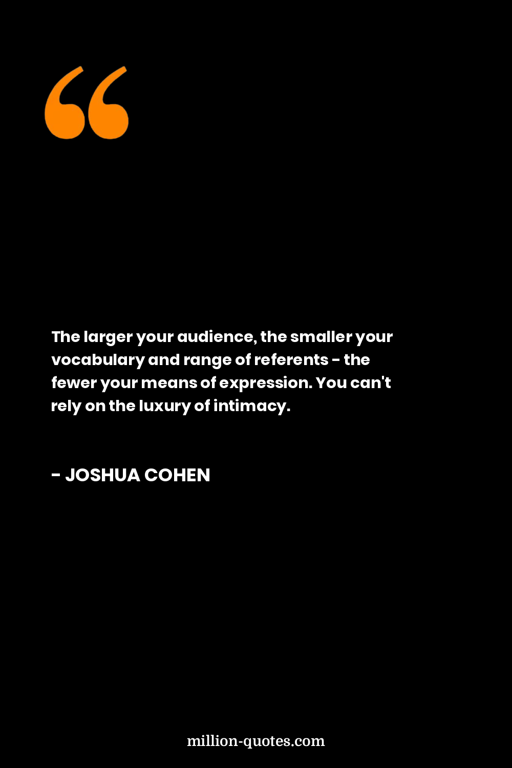The larger your audience, the smaller your vocabulary and range of referents - the fewer your means of expression. You can't rely on the luxury of intimacy.