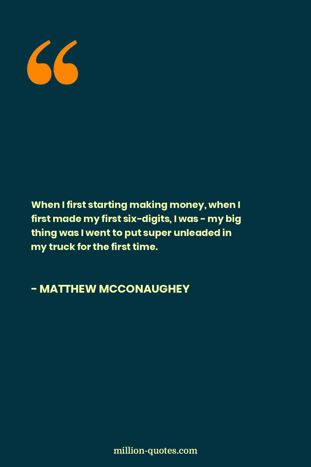 When I first starting making money, when I first made my first six-digits, I was - my big thing was I went to put super unleaded in my truck for the first time.
