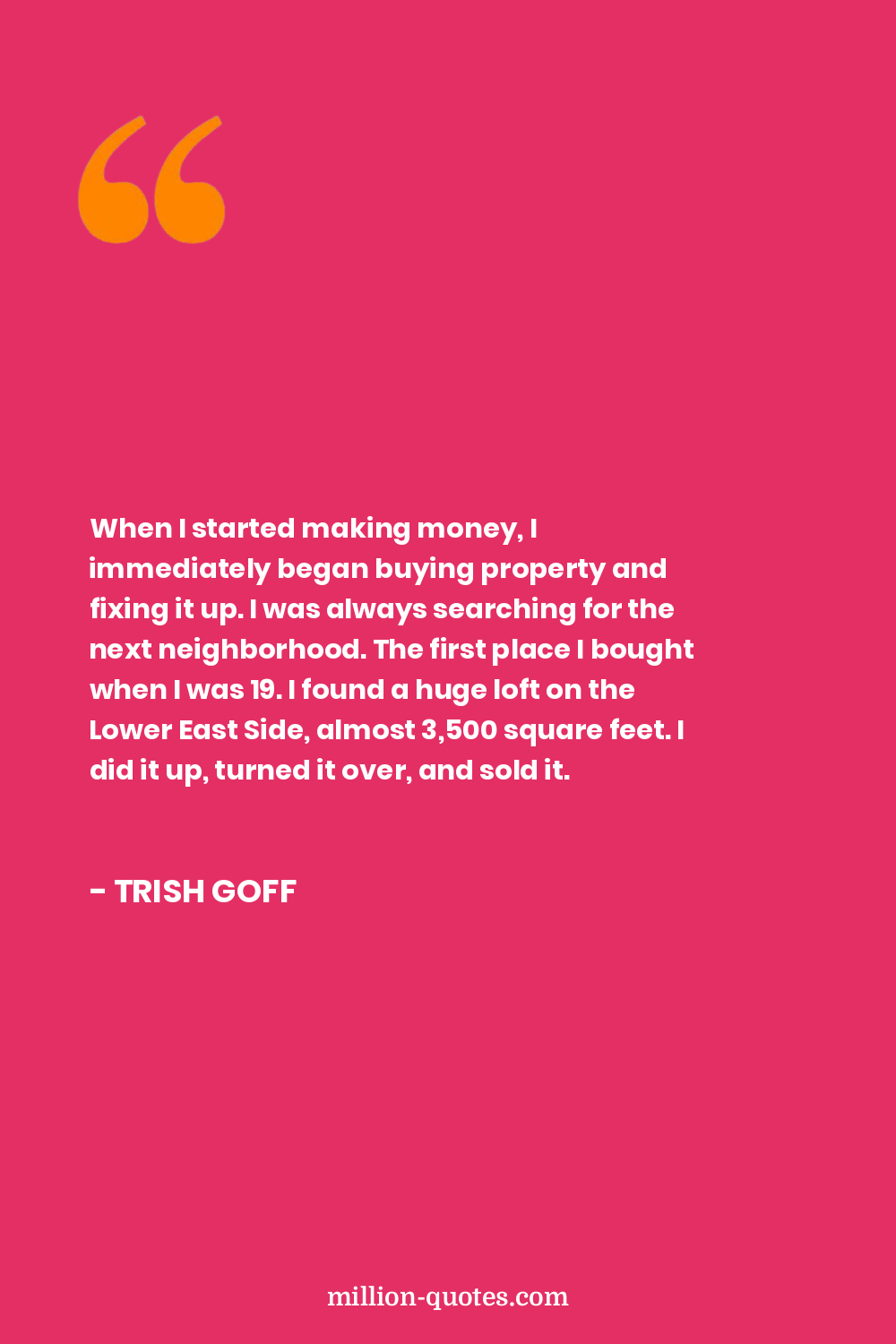 When I started making money, I immediately began buying property and fixing it up. I was always searching for the next neighborhood. The first place I bought when I was 19. I found a huge loft on the Lower East Side, almost 3,500 square feet. I did it up, turned it over, and sold it.
