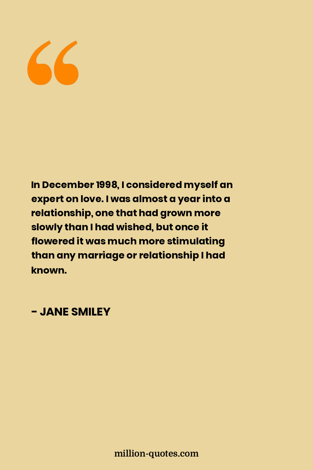 In December 1998, I considered myself an expert on love. I was almost a year into a relationship, one that had grown more slowly than I had wished, but once it flowered it was much more stimulating than any marriage or relationship I had known.