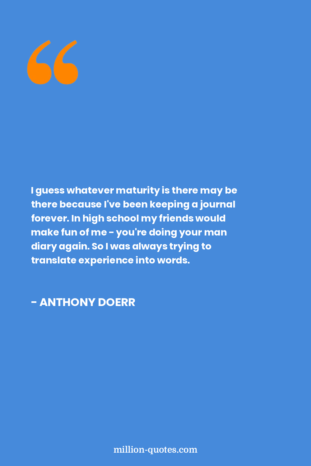 I guess whatever maturity is there may be there because I've been keeping a journal forever. In high school my friends would make fun of me - you're doing your man diary again. So I was always trying to translate experience into words.