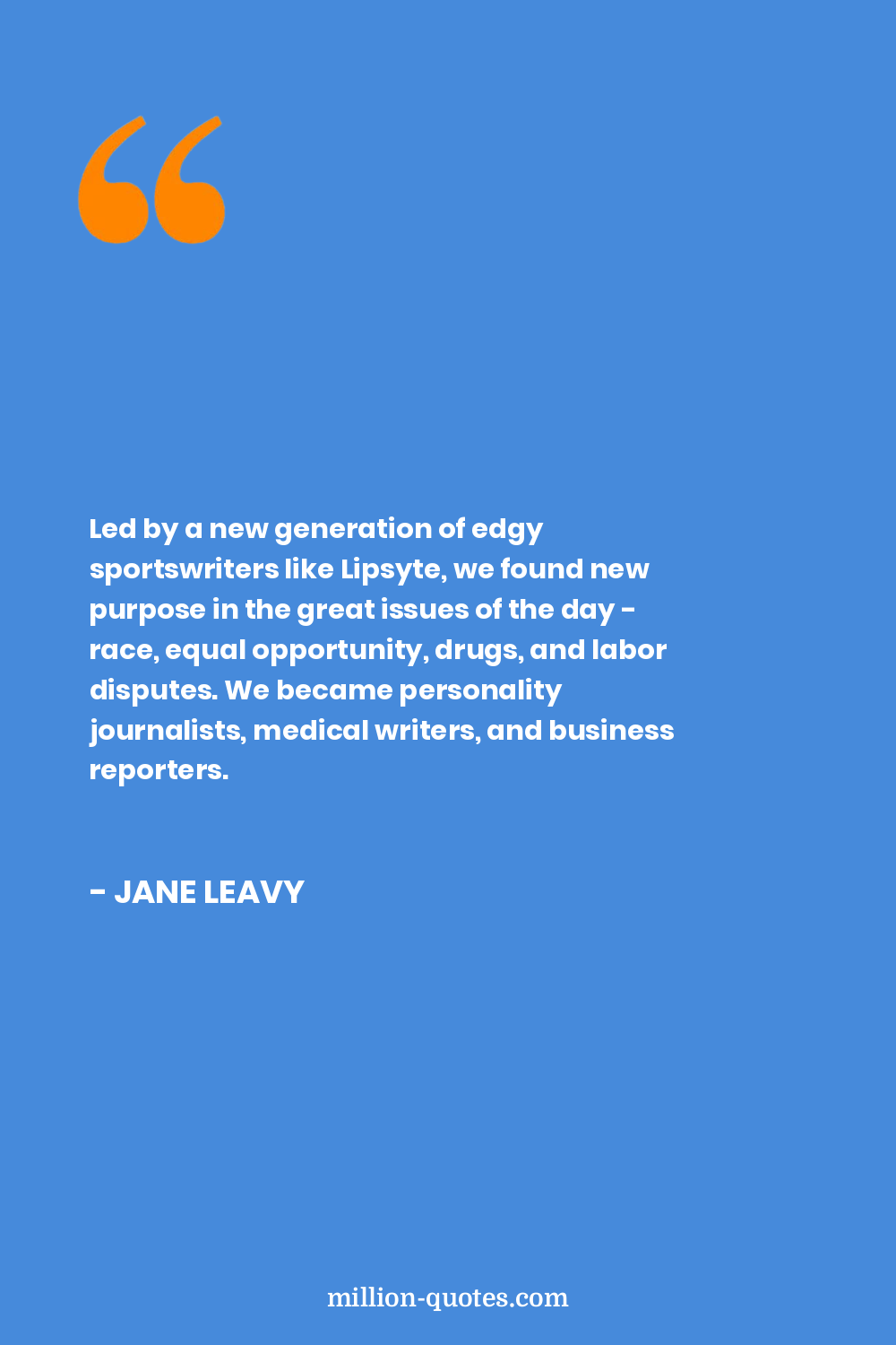 Led by a new generation of edgy sportswriters like Lipsyte, we found new purpose in the great issues of the day - race, equal opportunity, drugs, and labor disputes. We became personality journalists, medical writers, and business reporters.
