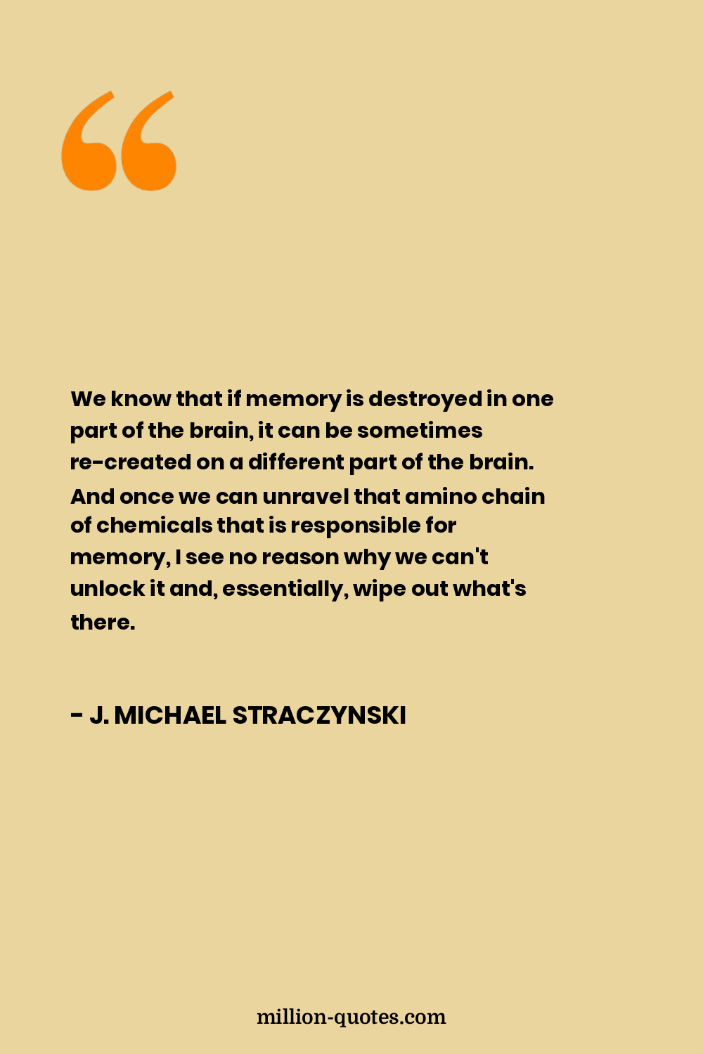 We know that if memory is destroyed in one part of the brain, it can be sometimes re-created on a different part of the brain. And once we can unravel that amino chain of chemicals that is responsible for memory, I see no reason why we can't unlock it and, essentially, wipe out what's there.