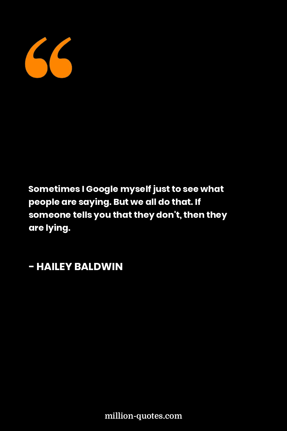 Sometimes I Google myself just to see what people are saying. But we all do that. If someone tells you that they don't, then they are lying.