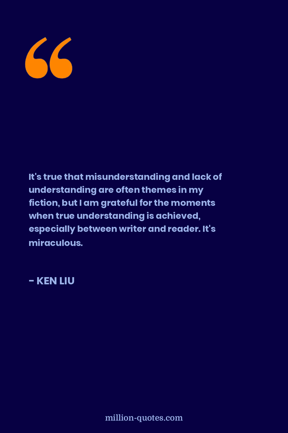 It's true that misunderstanding and lack of understanding are often themes in my fiction, but I am grateful for the moments when true understanding is achieved, especially between writer and reader. It's miraculous.