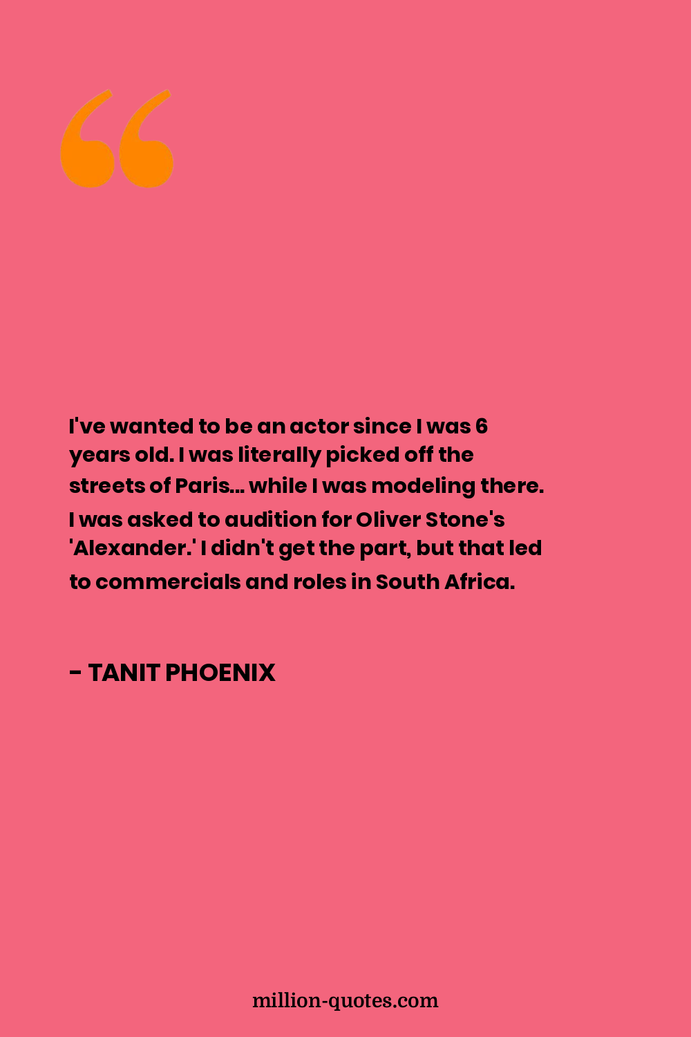 I've wanted to be an actor since I was 6 years old. I was literally picked off the streets of Paris... while I was modeling there. I was asked to audition for Oliver Stone's 'Alexander.' I didn't get the part, but that led to commercials and roles in South Africa.