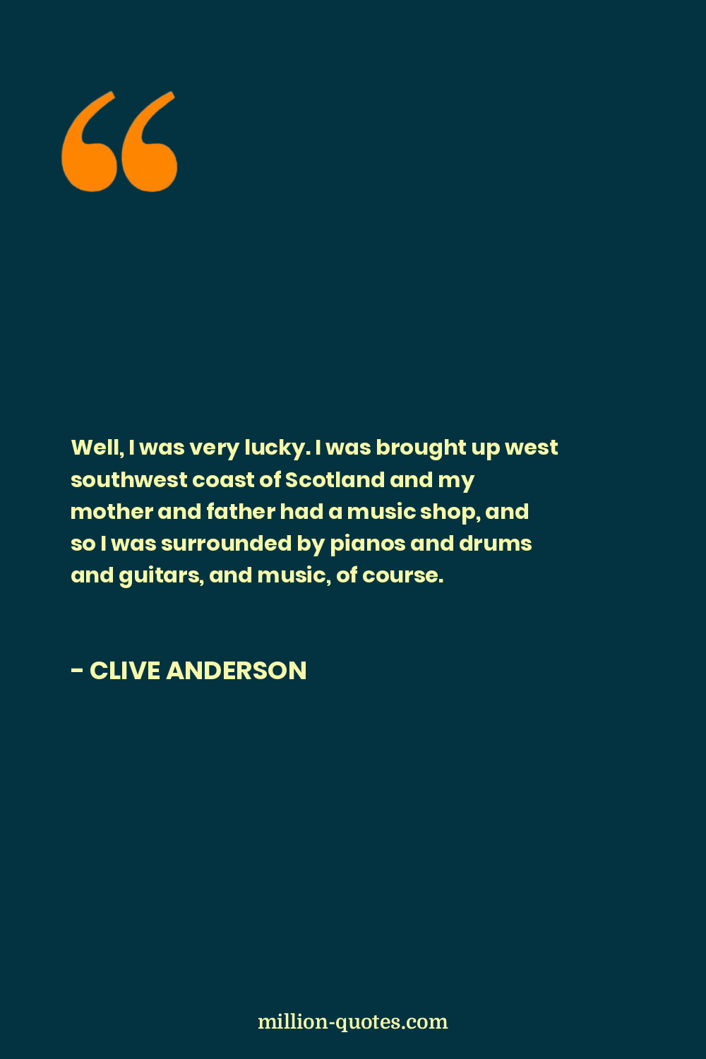 Well, I was very lucky. I was brought up west southwest coast of Scotland and my mother and father had a music shop, and so I was surrounded by pianos and drums and guitars, and music, of course.