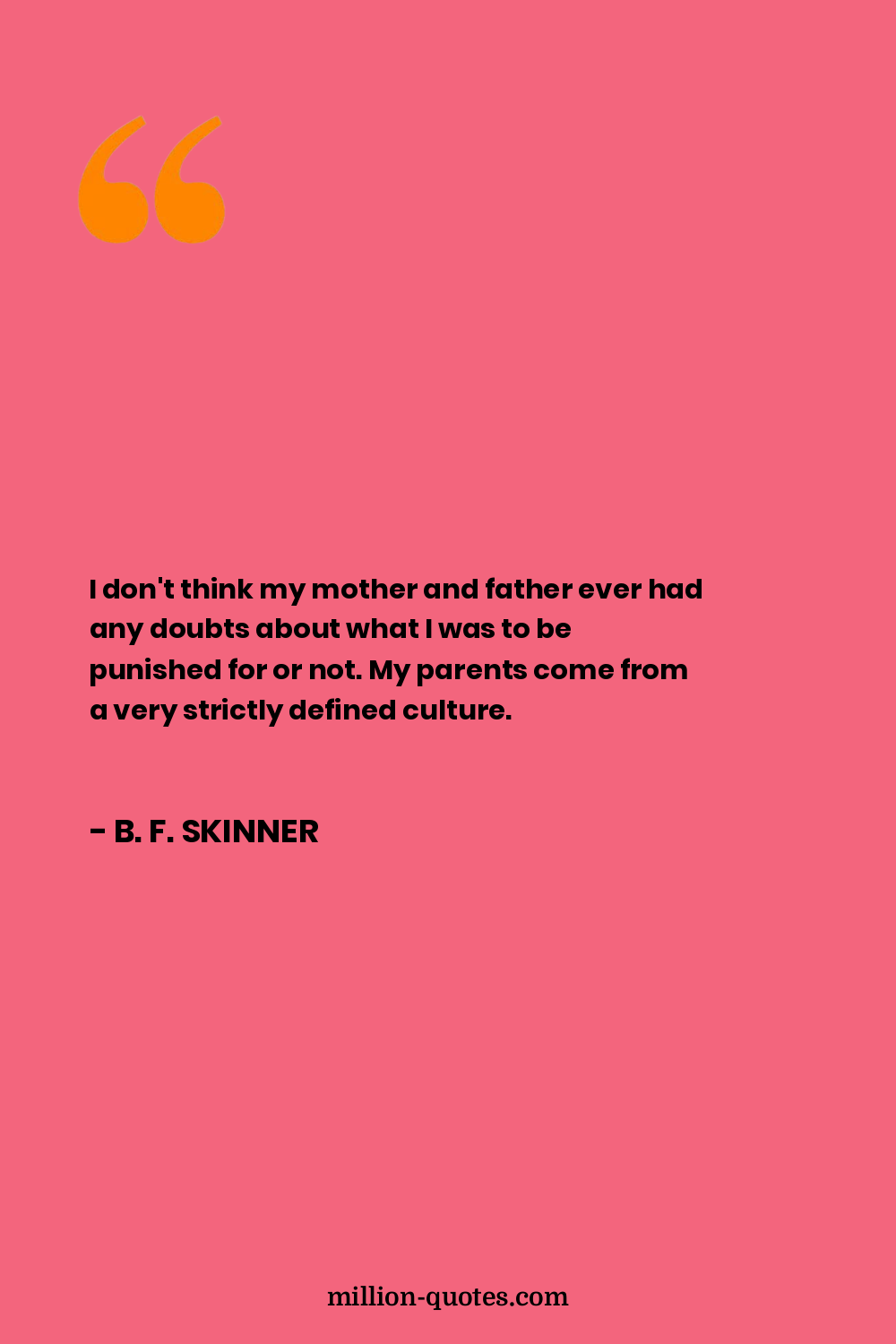 I don't think my mother and father ever had any doubts about what I was to be punished for or not. My parents come from a very strictly defined culture.
