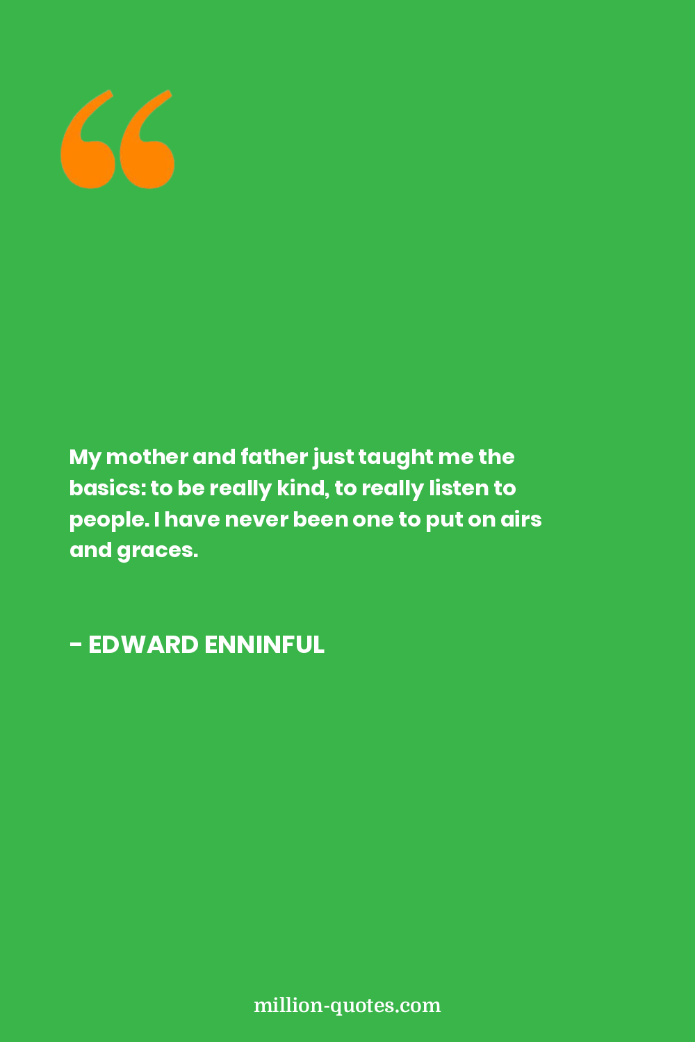 My mother and father just taught me the basics: to be really kind, to really listen to people. I have never been one to put on airs and graces.