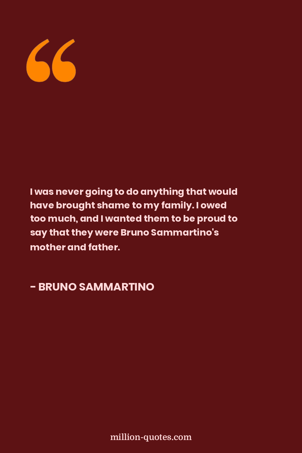I was never going to do anything that would have brought shame to my family. I owed too much, and I wanted them to be proud to say that they were Bruno Sammartino's mother and father.