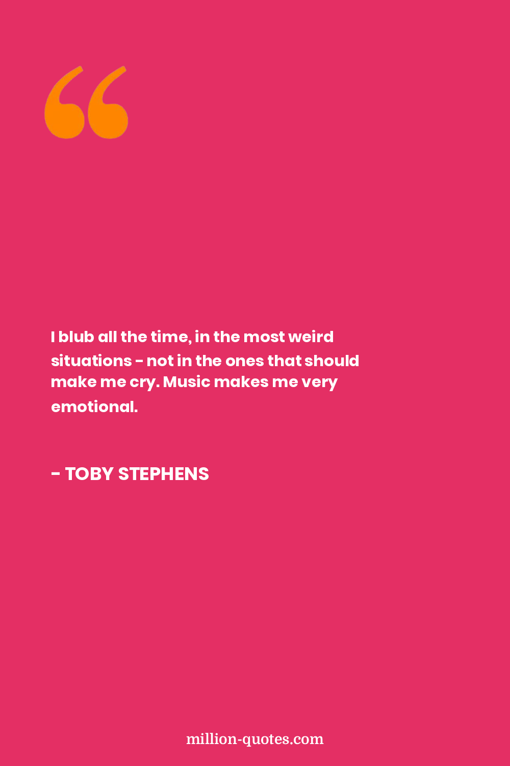 I blub all the time, in the most weird situations - not in the ones that should make me cry. Music makes me very emotional.
