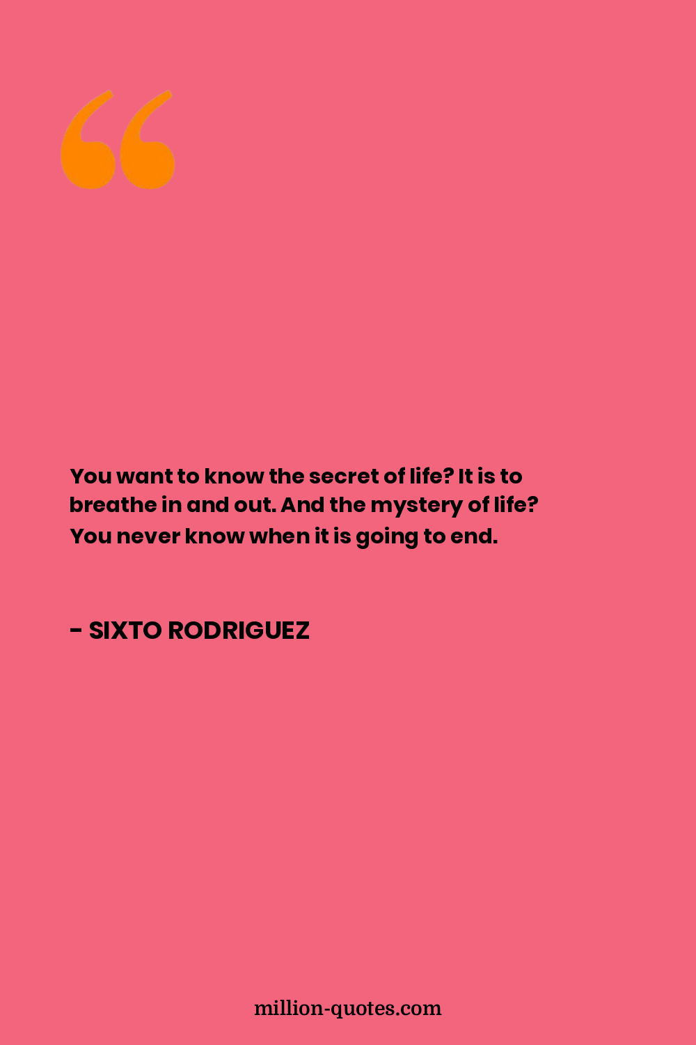 You want to know the secret of life? It is to breathe in and out. And the mystery of life? You never know when it is going to end.