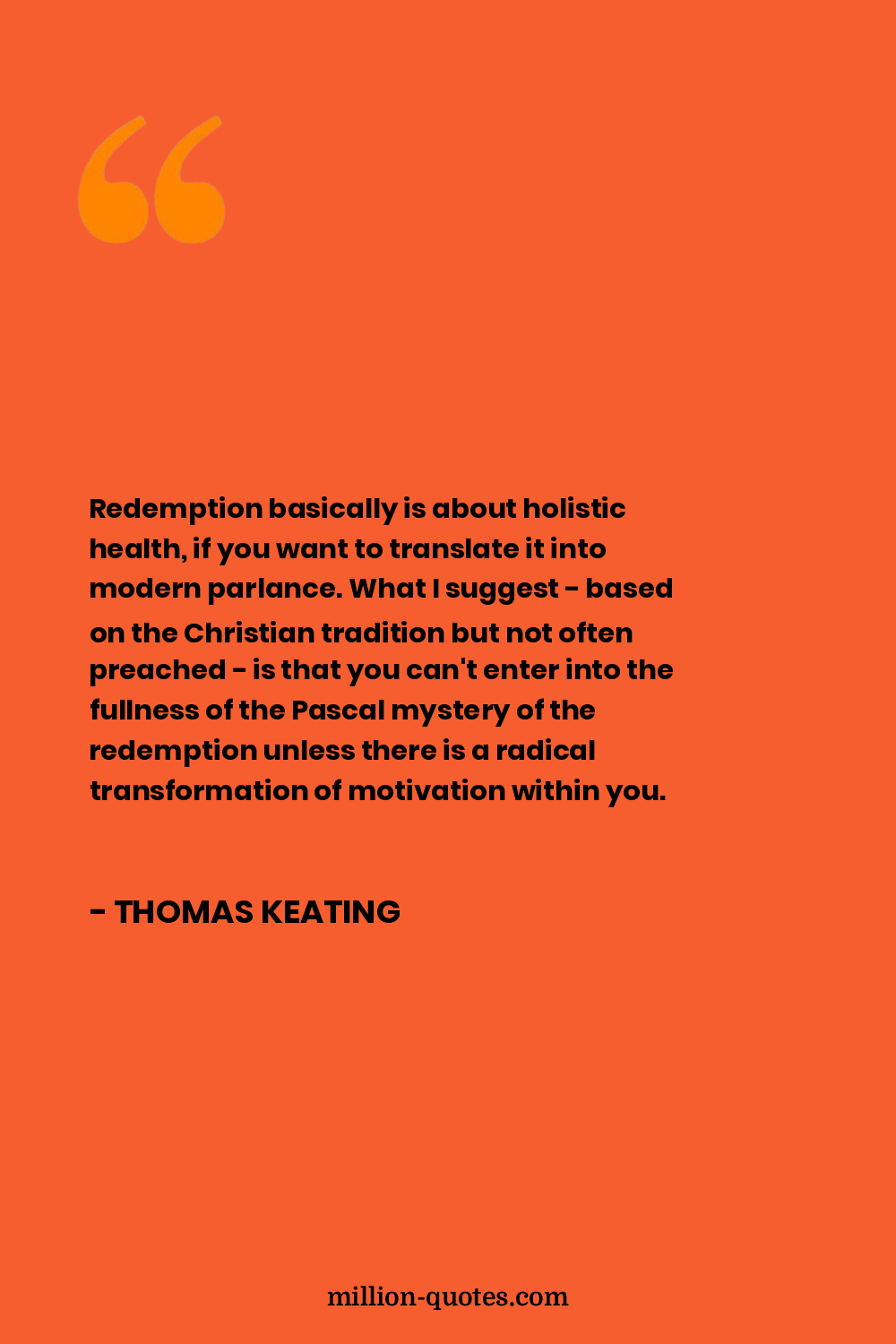 Redemption basically is about holistic health, if you want to translate it into modern parlance. What I suggest - based on the Christian tradition but not often preached - is that you can't enter into the fullness of the Pascal mystery of the redemption unless there is a radical transformation of motivation within you.