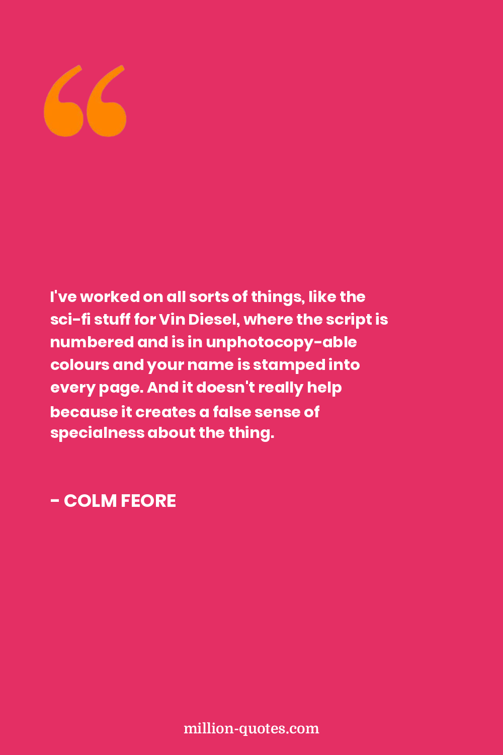 I've worked on all sorts of things, like the sci-fi stuff for Vin Diesel, where the script is numbered and is in unphotocopy-able colours and your name is stamped into every page. And it doesn't really help because it creates a false sense of specialness about the thing.