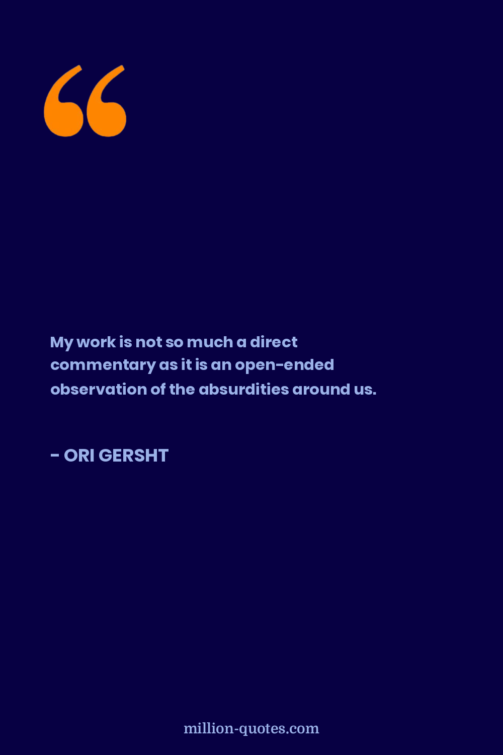 My work is not so much a direct commentary as it is an open-ended observation of the absurdities around us.