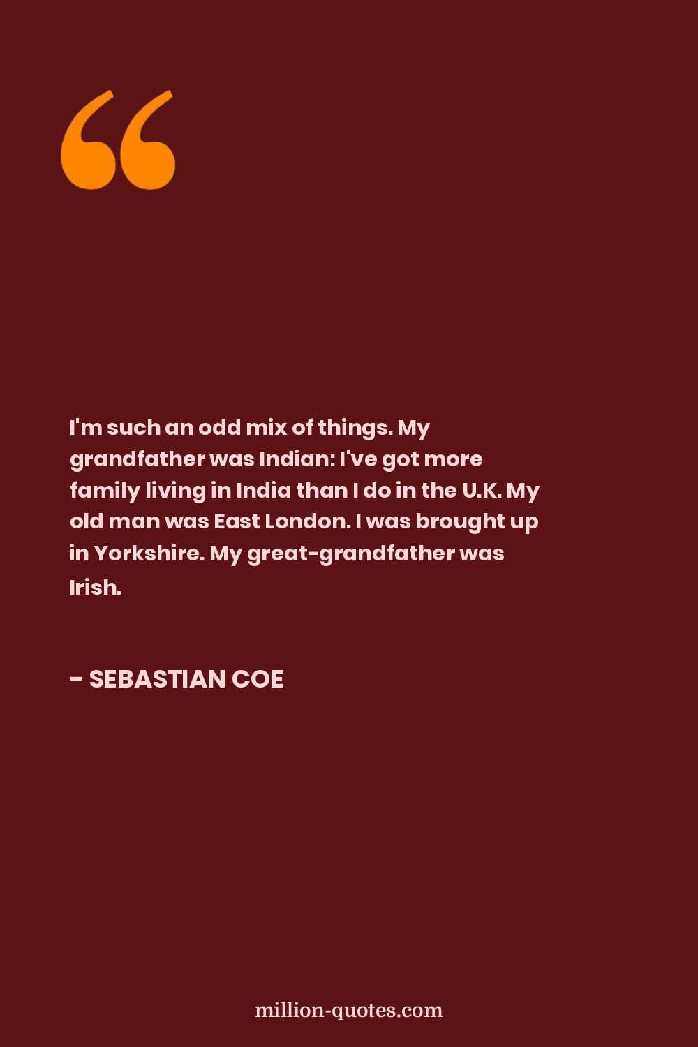 I'm such an odd mix of things. My grandfather was Indian: I've got more family living in India than I do in the U.K. My old man was East London. I was brought up in Yorkshire. My great-grandfather was Irish.