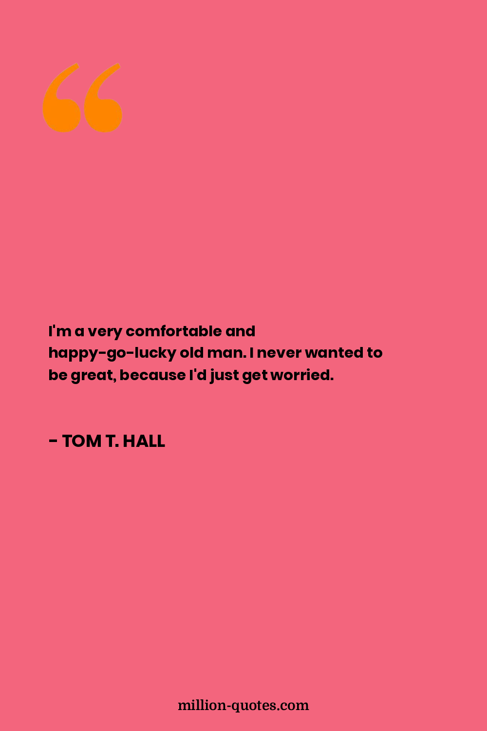 I'm a very comfortable and happy-go-lucky old man. I never wanted to be great, because I'd just get worried.