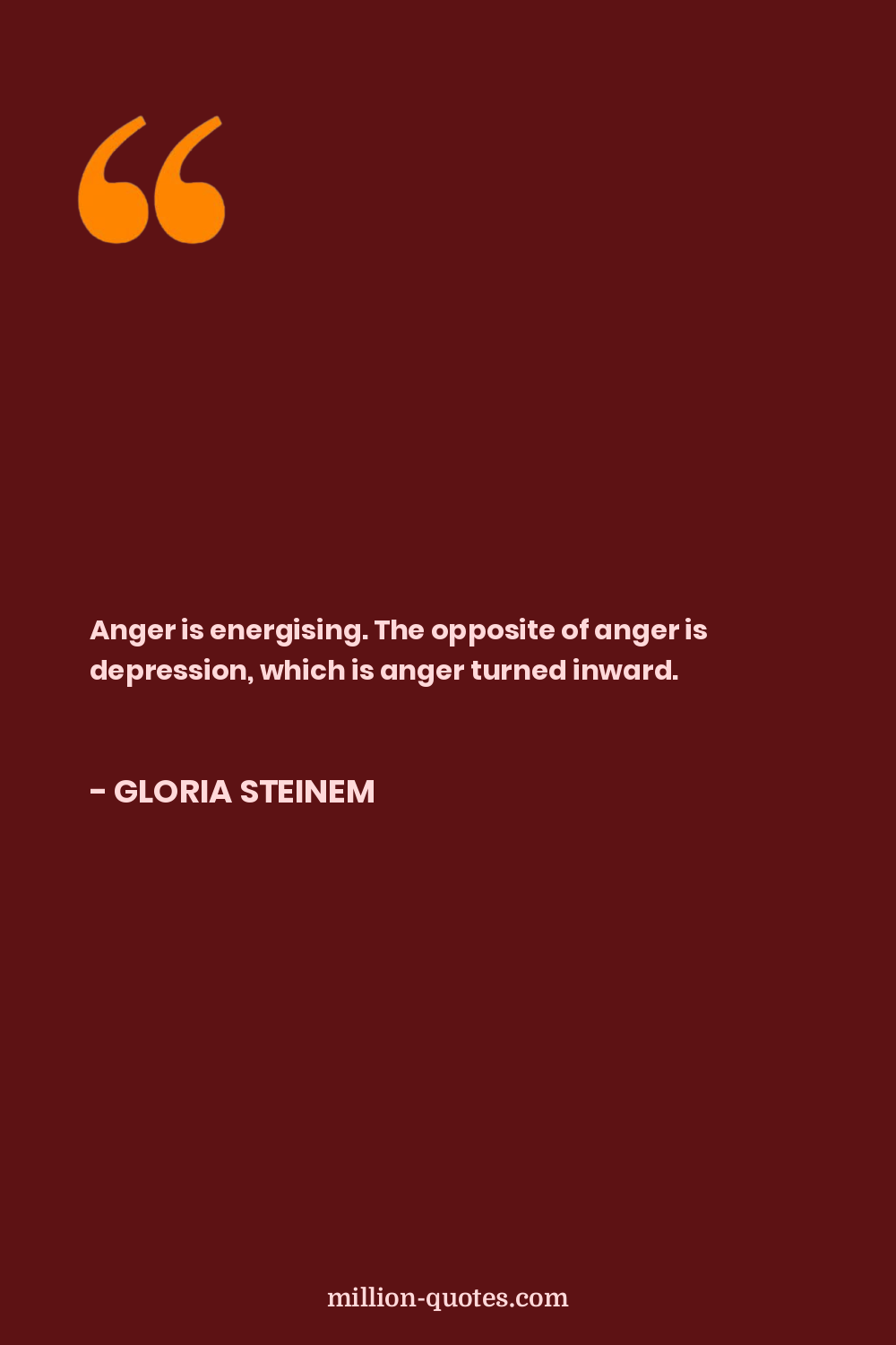 Anger is energising. The opposite of anger is depression, which is anger turned inward.