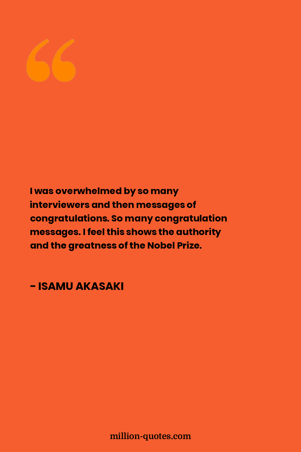 I was overwhelmed by so many interviewers and then messages of congratulations. So many congratulation messages. I feel this shows the authority and the greatness of the Nobel Prize.