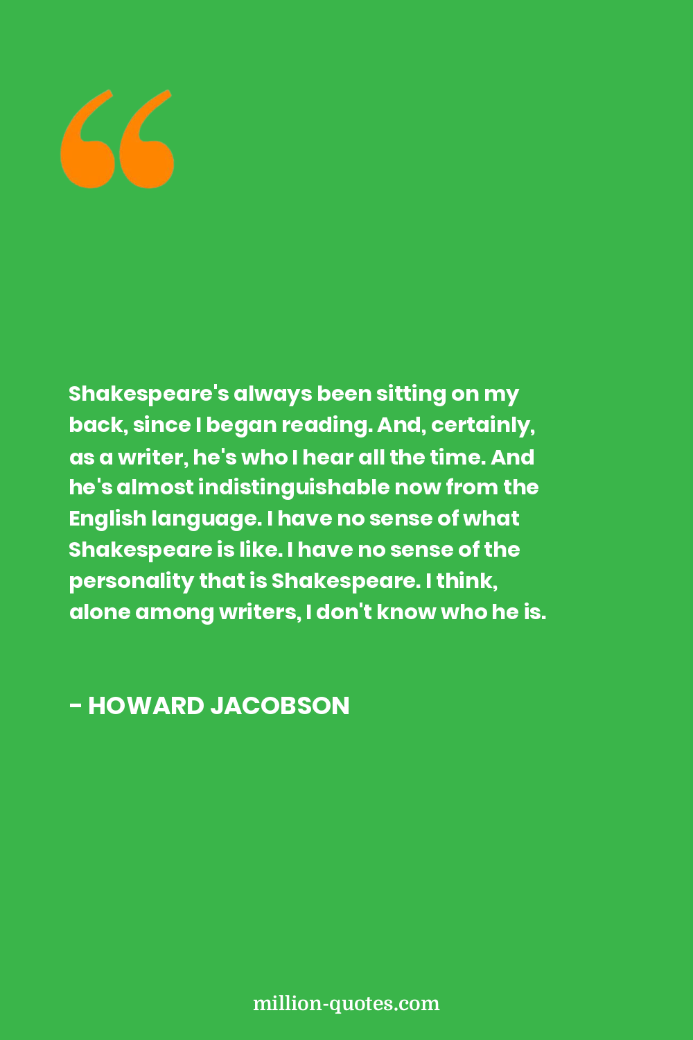 Shakespeare's always been sitting on my back, since I began reading. And, certainly, as a writer, he's who I hear all the time. And he's almost indistinguishable now from the English language. I have no sense of what Shakespeare is like. I have no sense of the personality that is Shakespeare. I think, alone among writers, I don't know who he is.