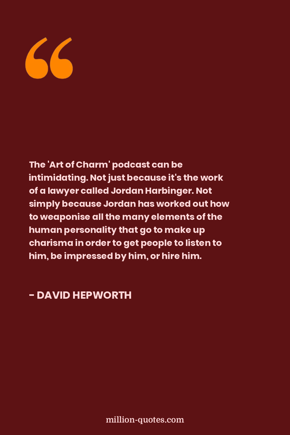 The 'Art of Charm' podcast can be intimidating. Not just because it's the work of a lawyer called Jordan Harbinger. Not simply because Jordan has worked out how to weaponise all the many elements of the human personality that go to make up charisma in order to get people to listen to him, be impressed by him, or hire him.