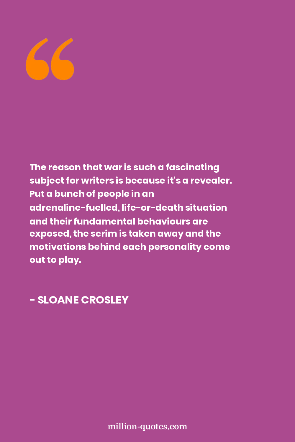 The reason that war is such a fascinating subject for writers is because it's a revealer. Put a bunch of people in an adrenaline-fuelled, life-or-death situation and their fundamental behaviours are exposed, the scrim is taken away and the motivations behind each personality come out to play.