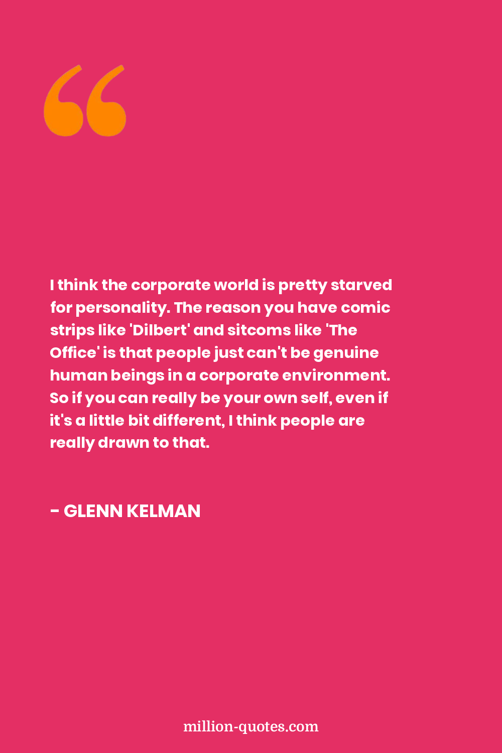 I think the corporate world is pretty starved for personality. The reason you have comic strips like 'Dilbert' and sitcoms like 'The Office' is that people just can't be genuine human beings in a corporate environment. So if you can really be your own self, even if it's a little bit different, I think people are really drawn to that.