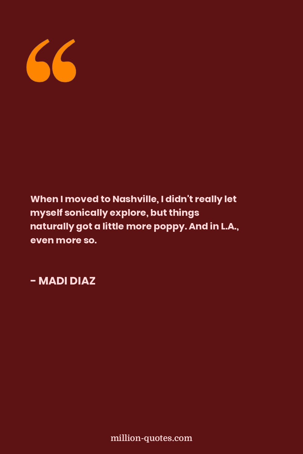 When I moved to Nashville, I didn't really let myself sonically explore, but things naturally got a little more poppy. And in L.A., even more so.