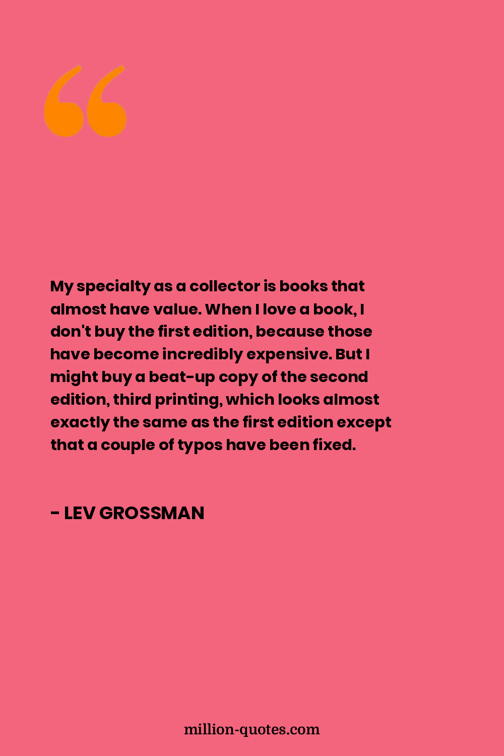 My specialty as a collector is books that almost have value. When I love a book, I don't buy the first edition, because those have become incredibly expensive. But I might buy a beat-up copy of the second edition, third printing, which looks almost exactly the same as the first edition except that a couple of typos have been fixed.