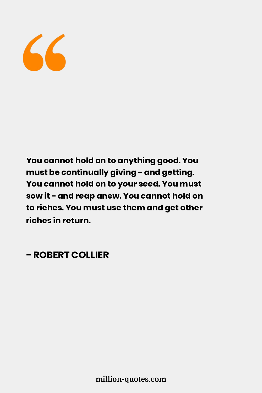 You cannot hold on to anything good. You must be continually giving - and getting. You cannot hold on to your seed. You must sow it - and reap anew. You cannot hold on to riches. You must use them and get other riches in return.