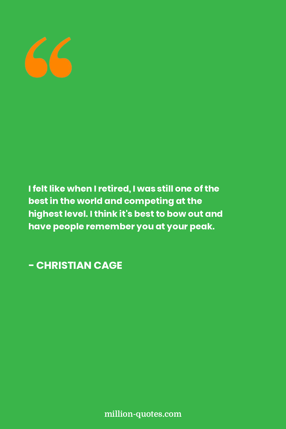 I felt like when I retired, I was still one of the best in the world and competing at the highest level. I think it's best to bow out and have people remember you at your peak.