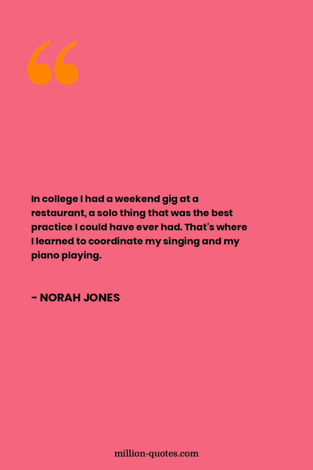 In college I had a weekend gig at a restaurant, a solo thing that was the best practice I could have ever had. That's where I learned to coordinate my singing and my piano playing.