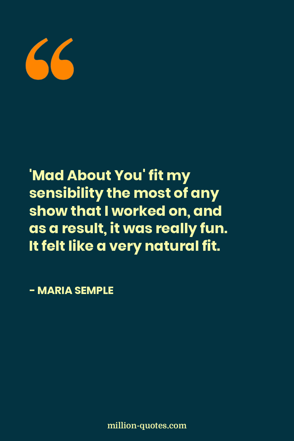 'Mad About You' fit my sensibility the most of any show that I worked on, and as a result, it was really fun. It felt like a very natural fit.